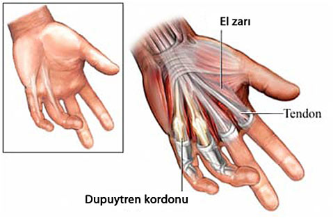 Bu duruma Dupuytren kontraktürü adı verilir. Derinin etkilenmesine rağmen tendonlar